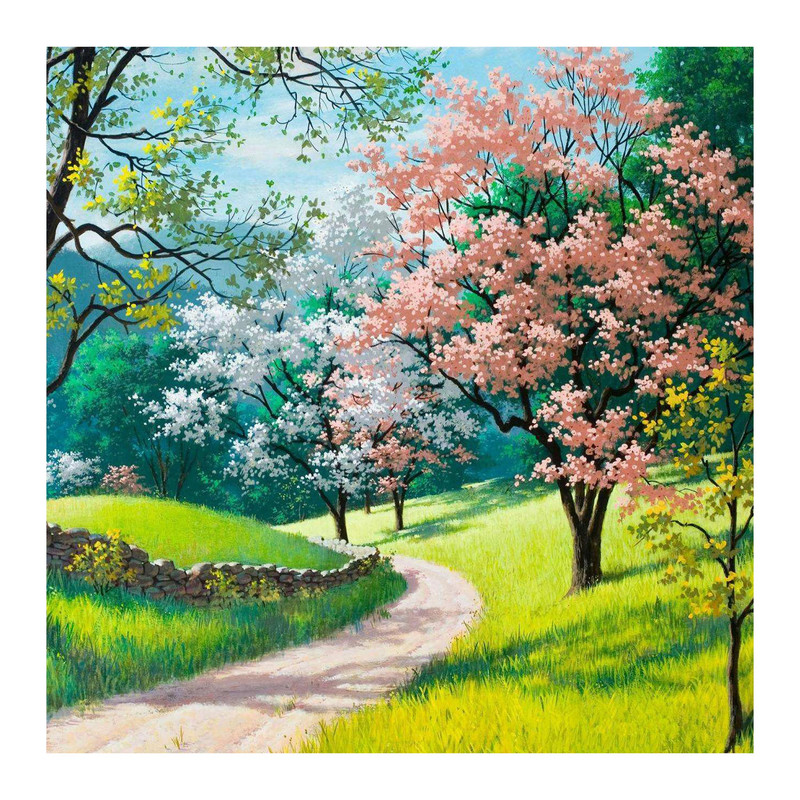 تابلو شاسی مدل R1082 طرح نقاشی منظره بهار و درخت شکوفه