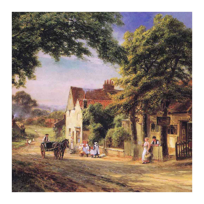 تابلو شاسی مدل R1066 طرح نقاشی روستا و کالسکه و اسب