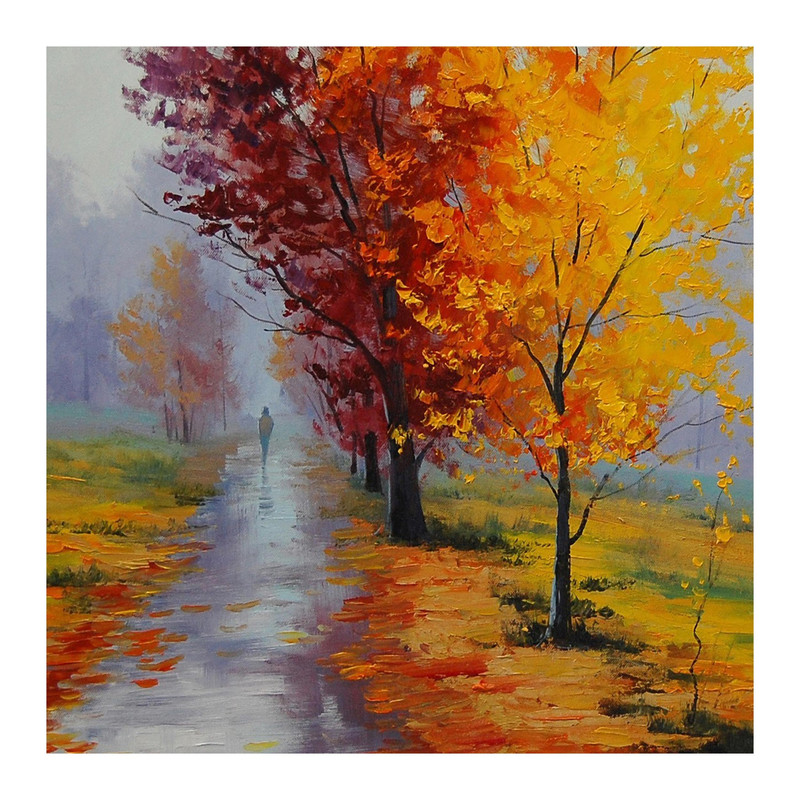 تابلو شاسی مدل R1053 طرح نقاشی منظره پاییز و درخت