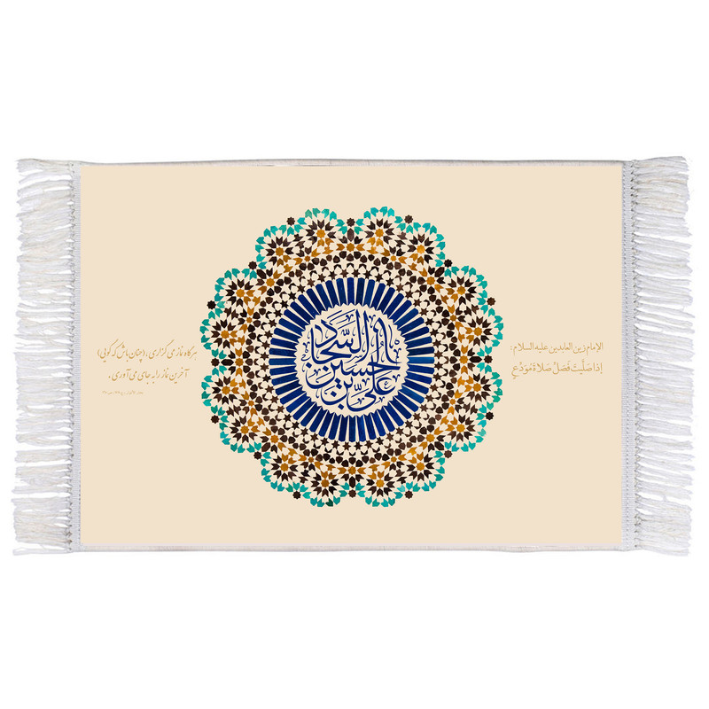 فرش ماشینی دیوارکوب اطلس آبی طرح یا علی بن حسین زین العابدین مدل T4743