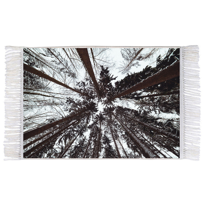 فرش ماشینی دیوارکوب اطلس آبی طرح جنگل و درخت مدل T1938