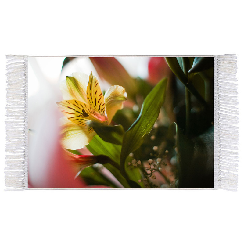 فرش ماشینی دیوارکوب اطلس آبی طرح میوه زردآلو مدل T1779