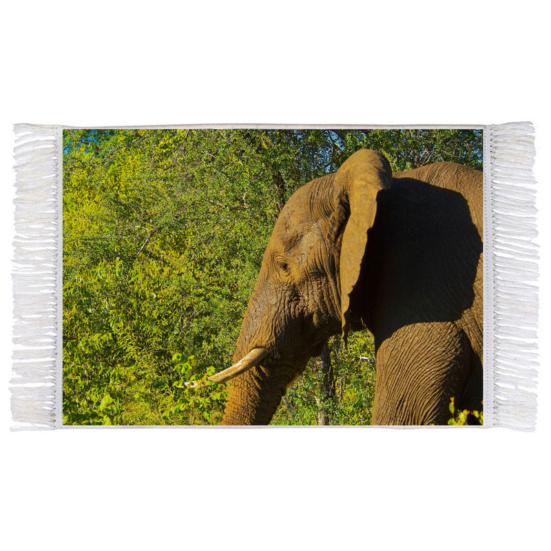فرش ماشینی دیوارکوب اطلس آبی طرح جنگل و فیل مدل T1997