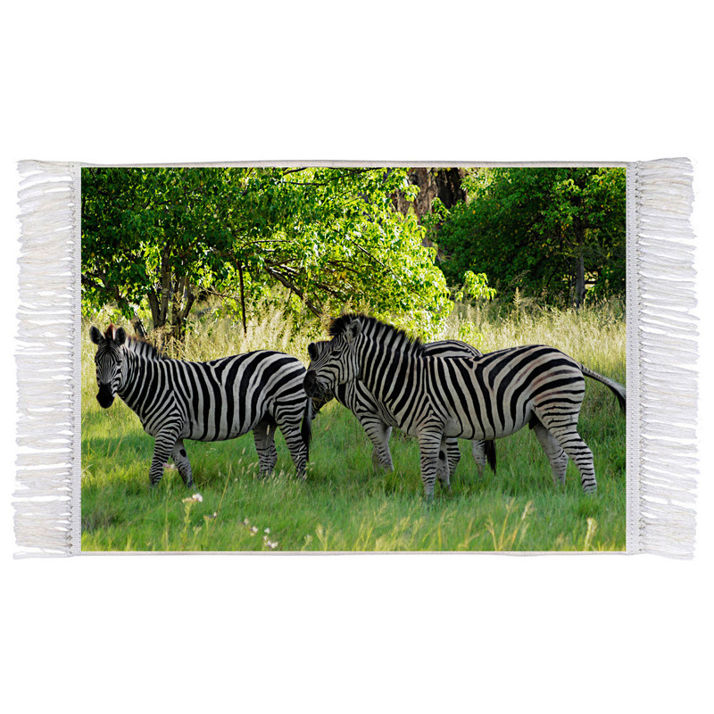 فرش ماشینی دیوارکوب اطلس آبی طرح جنگل و گور خر مدل T1995