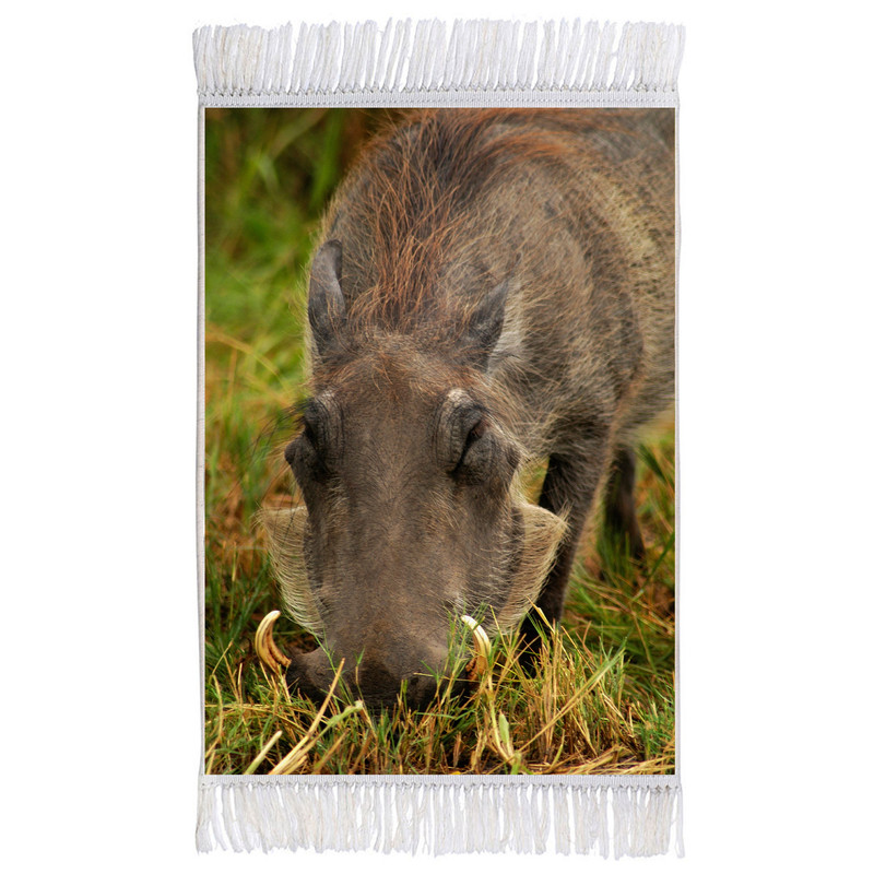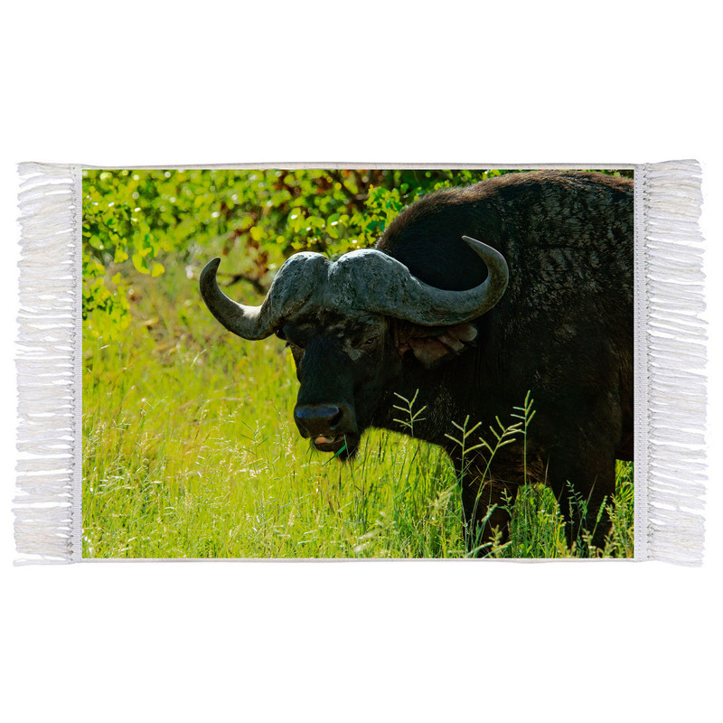 فرش ماشینی دیوارکوب اطلس آبی طرح جنگل و بوفالو مدل T2002