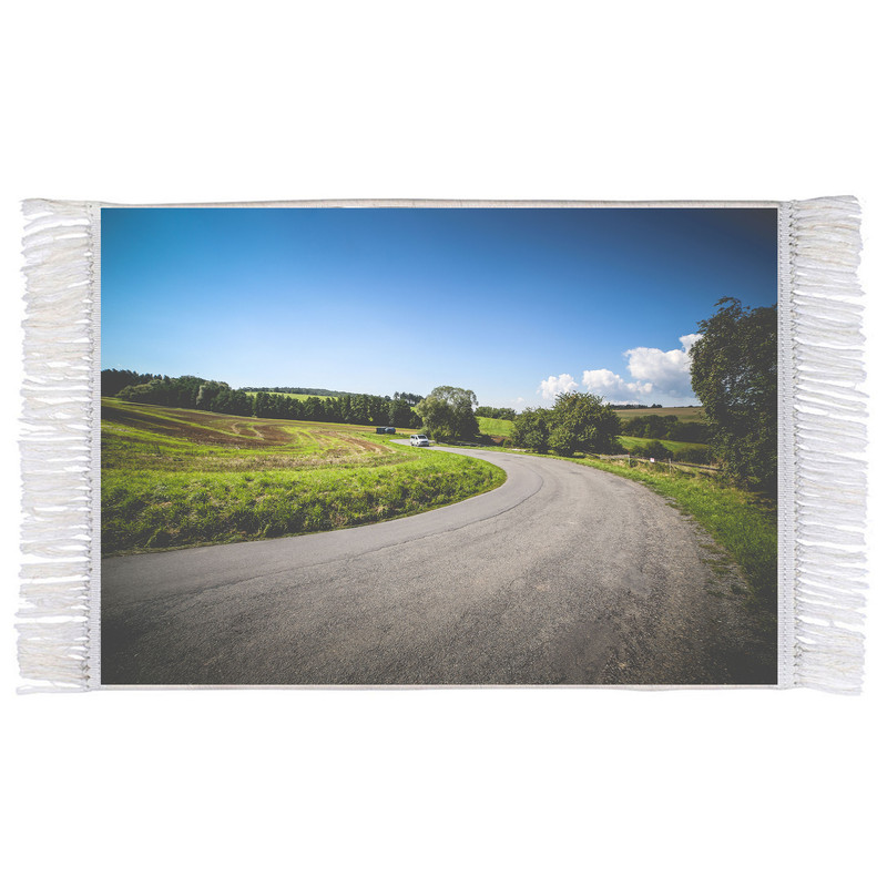 فرش ماشینی دیوارکوب اطلس آبی طرح جاده و طبیعت مدل T1870