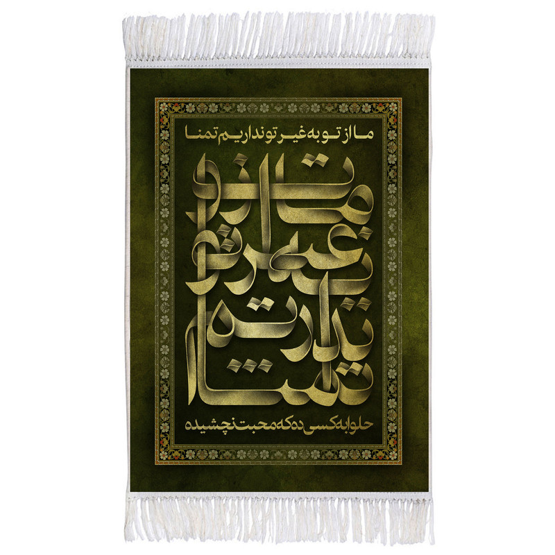 فرش ماشینی دیوارکوب اطلس آبی طرح ما از تو به غیر تو نداریم تمنا حلوا به کسی ده که محبت نچشیده مدل T2550