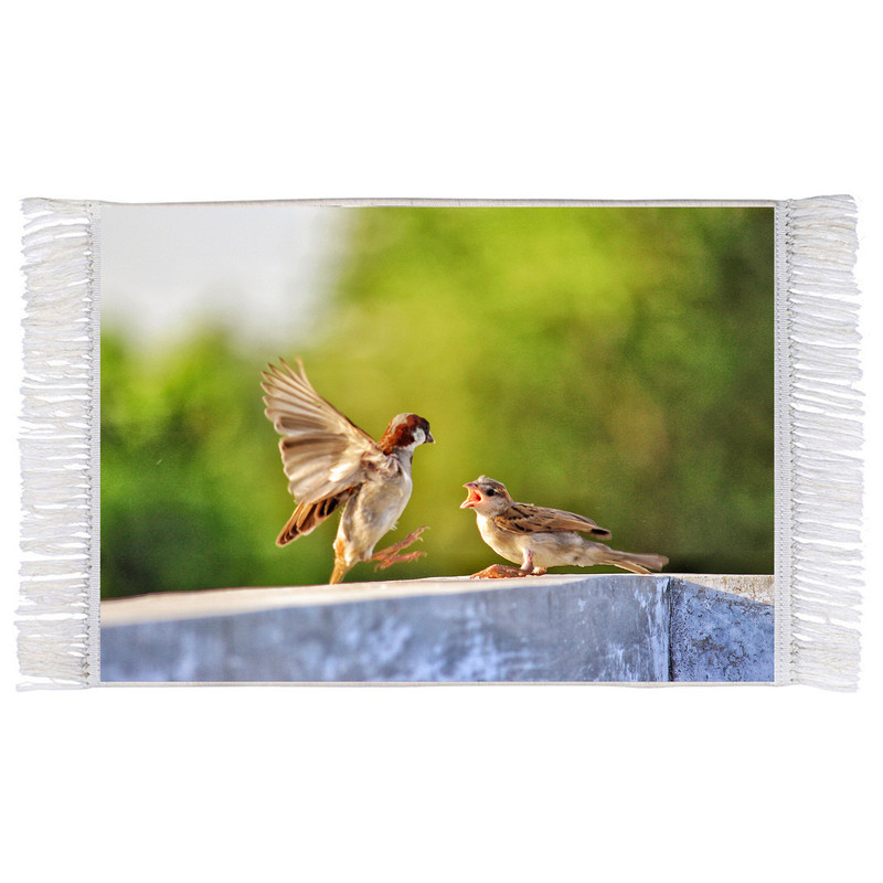 فرش ماشینی دیوارکوب اطلس آبی طرح گنجشک و پرنده مدل T1664
