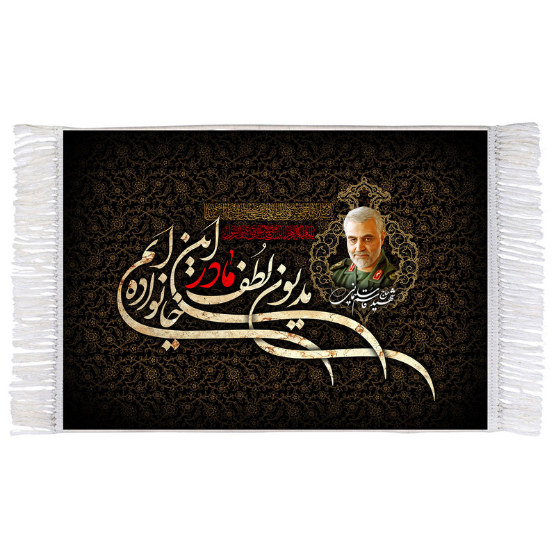 فرش ماشینی دیوارکوب اطلس آبی مدل شهید سلیمانی و مدیون لطف مادر این خانواده ایم T4257