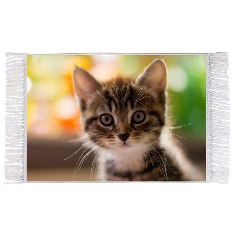 فرش ماشینی دیوارکوب اطلس آبی طرح گربه مدل T1530