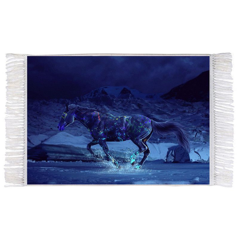 فرش ماشینی دیوارکوب اطلس آبی طرح اسب مدل T1336