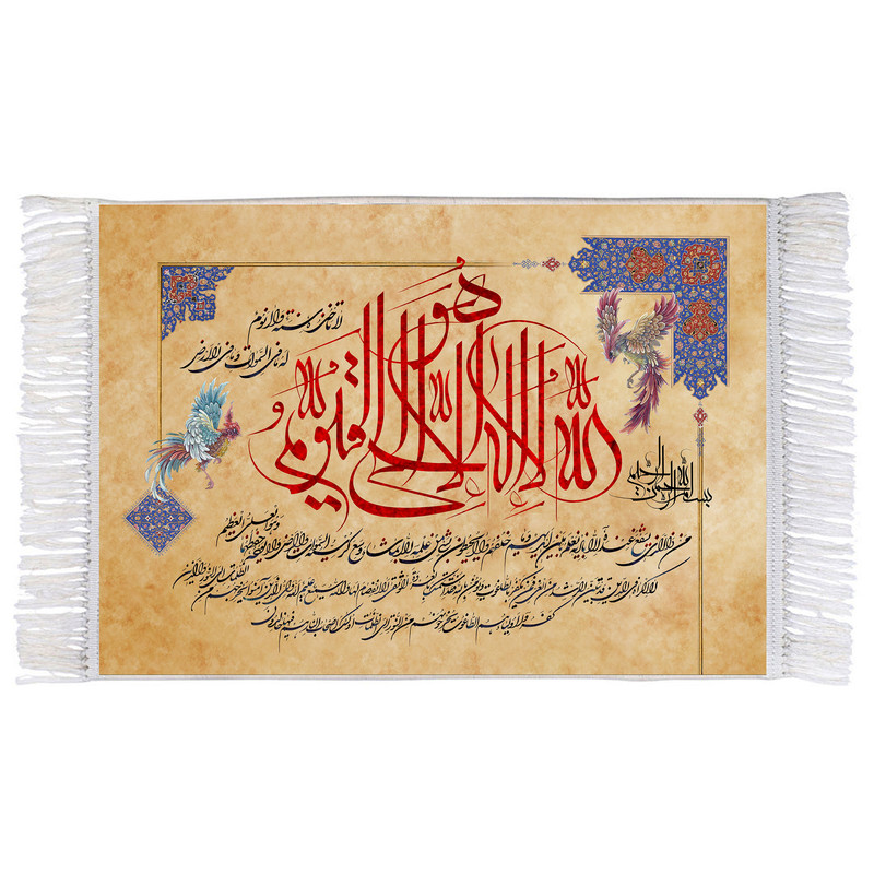 فرش ماشینی دیوارکوب اطلس آبی طرح آیت الکرسی مدل T3472