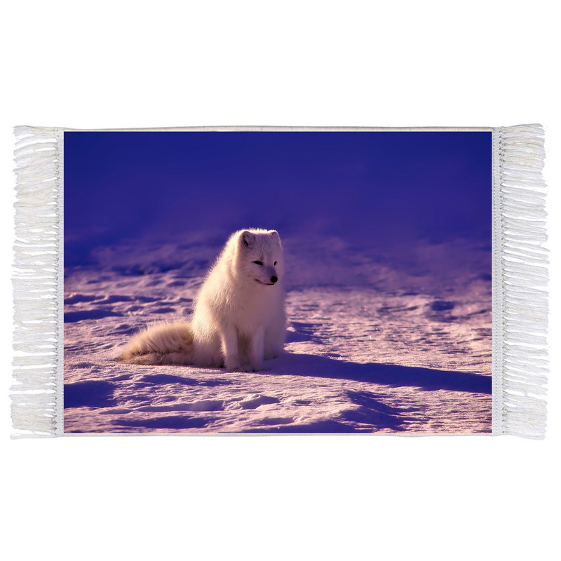 فرش ماشینی دیوارکوب اطلس آبی طرح سگ در برف مدل T1644