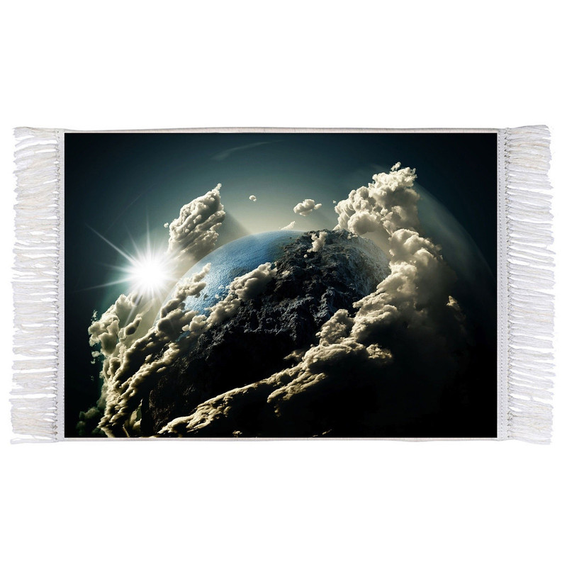 فرش ماشینی دیوارکوب اطلس آبی طرح کره زمین و ابر و خورشید مدل T1291