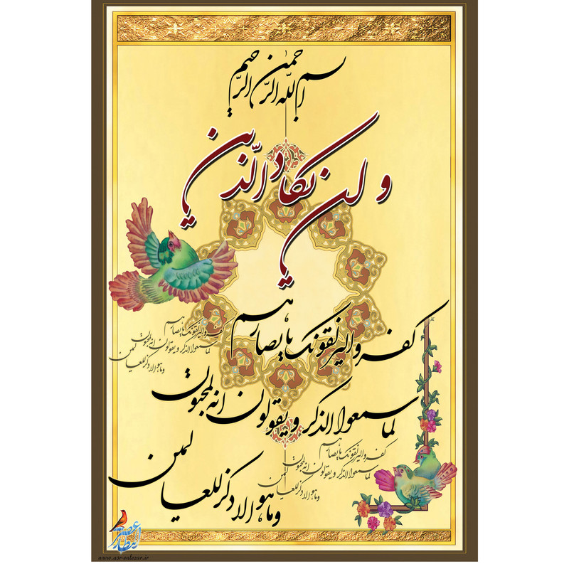تابلو شاسی مدل وان یکاد الذین کفروا لیزلقونک بابصارهم لما سمعوا الذکر ویقولون انه لمجنون وما هو الا ذکر للعالمین T3695