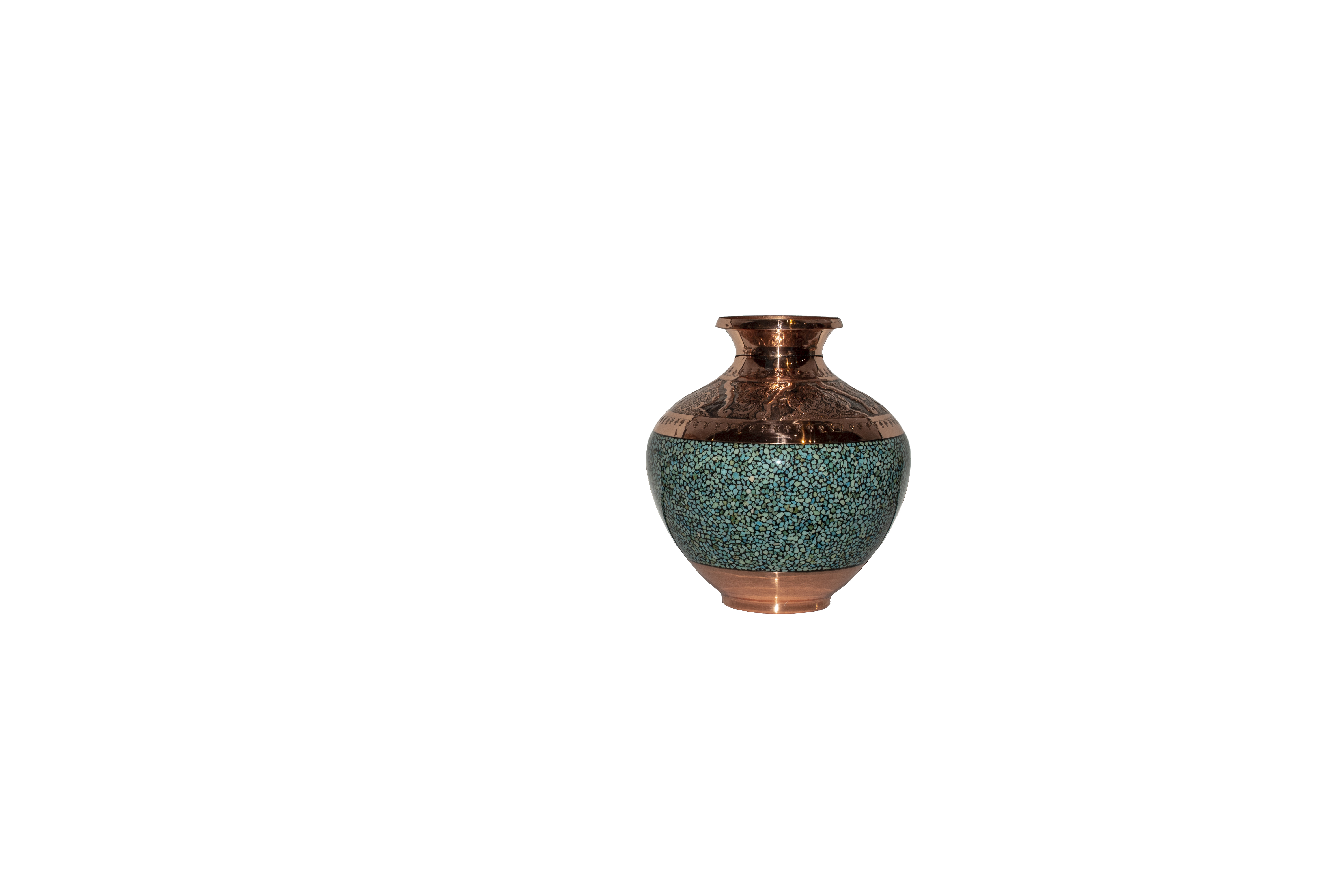 مس و فیروزه تلفیقی خیرهکننده از مس و سنگ فیروزه طبیعی است. در این هنر سنتی، استادکاران قطعات فیروزه را روی سطح مس میچسبانند و طرحهای زیبا و چشمنواز خلق میکنند. هر محصول، هم دوام مس را دارد و هم زیبایی و انرژی منحصربهفرد فیروزه را.