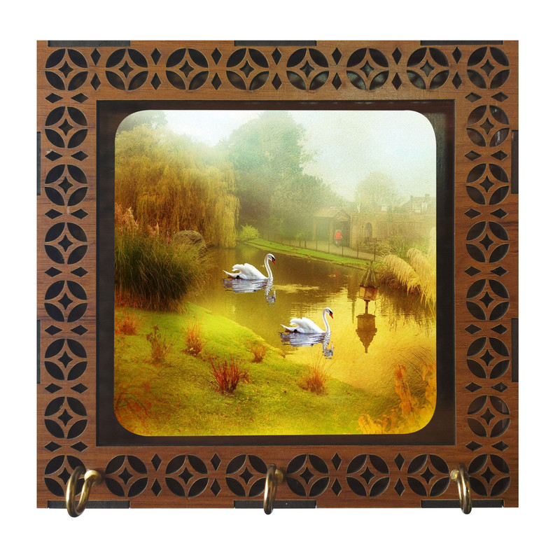 جا کلیدی مدل D1075 طرح نقاشی منظره و قو و برکه