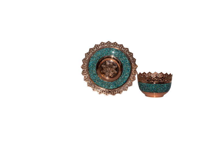 ست بشقاب و آجیل خوری مس وفیروزه