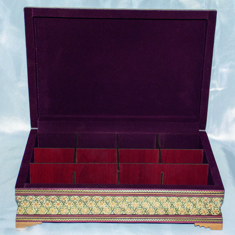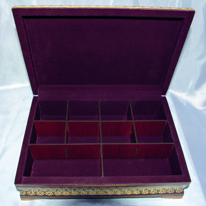 جنس و ساختار: ساخته شده از چوب مرغوب و تزئین شده با خاتمکاری دستساز