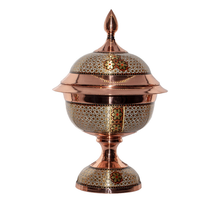 شکلات خوری مس وخاتم پایه دار طرح ۱